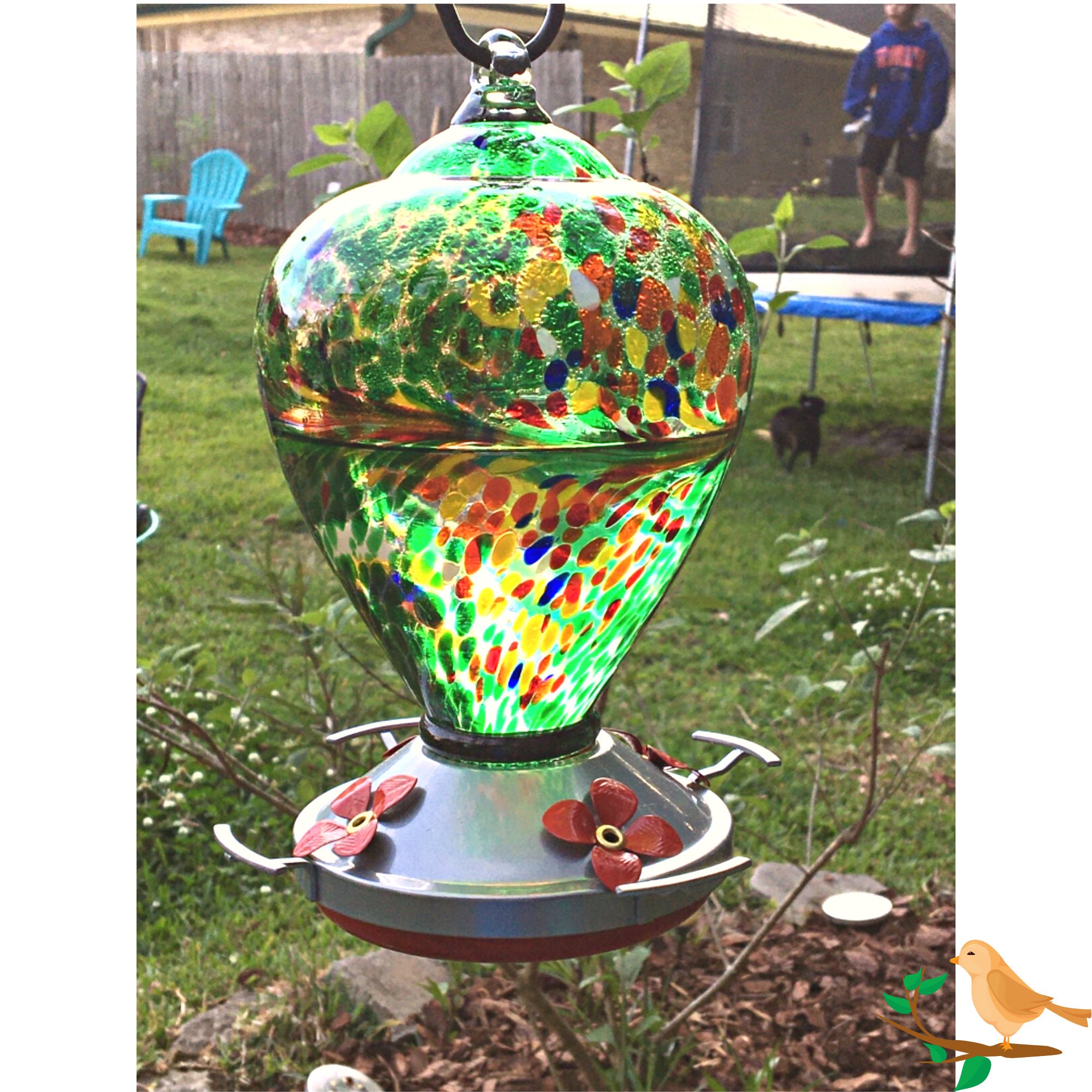 34 Oz Peacock Hummingbird Feeder Hand Blown Glass With Etsy
